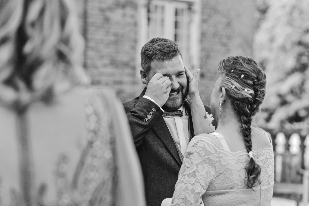 Jede Hochzeit ist anders und genau so begleite ich sie auch. Manche Paare wünschen sich eine Begleitung rund um die Trauung, andere möchten, dass ich ihren Tag über mehrere Stunden hinweg festhalte, vom Getting Ready bis zu den ersten Momenten der Feier. Beides hat seinen Platz. Und beides begleite ich so, dass ihr euch nicht nach mir richten müsst, sondern ich mich nach euch. Was euch dabei immer erwartet, ist eine Begleitung, bei der ihr euch nicht verstellen müsst. Ihr bekommt natürliche Momentaufnahmen, ein entspanntes Paarshooting ohne Druck und genau die Unterstützung, die ihr in dem Moment braucht. Ich halte mich zurück, wenn es passt, und gebe euch Sicherheit, wenn ihr sie braucht. Eure Bilder werden zeitlos und liebevoll bearbeitet, in Farbe und Schwarz-Weiß, und ihr bekommt sie in einer persönlichen Online-Galerie, die ihr ganz unkompliziert mit euren Liebsten teilen könnt.